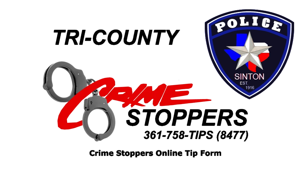 For crimes in Sinton or San Patricio County, contact Tri-County Crime Stoppers. For Corpus Christi or crimes in Nueces County, contact Corpus Christi Crime Stoppers.